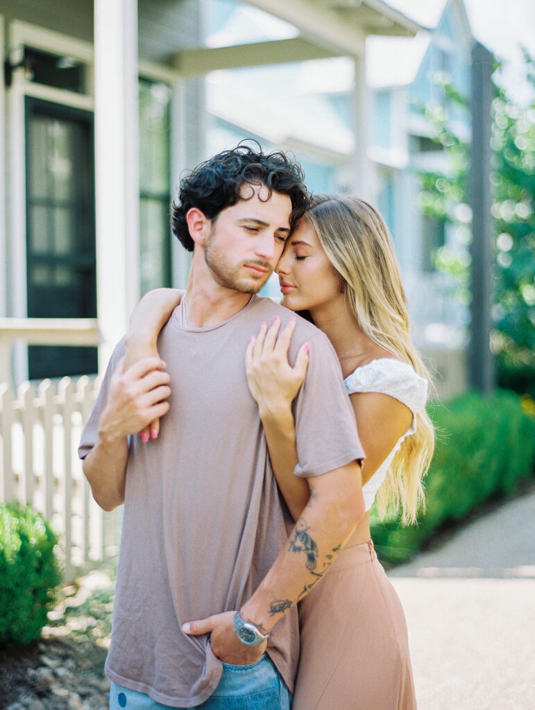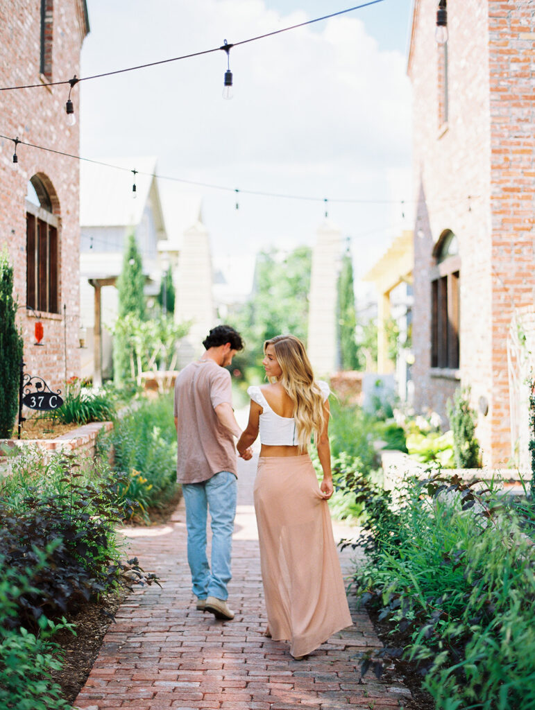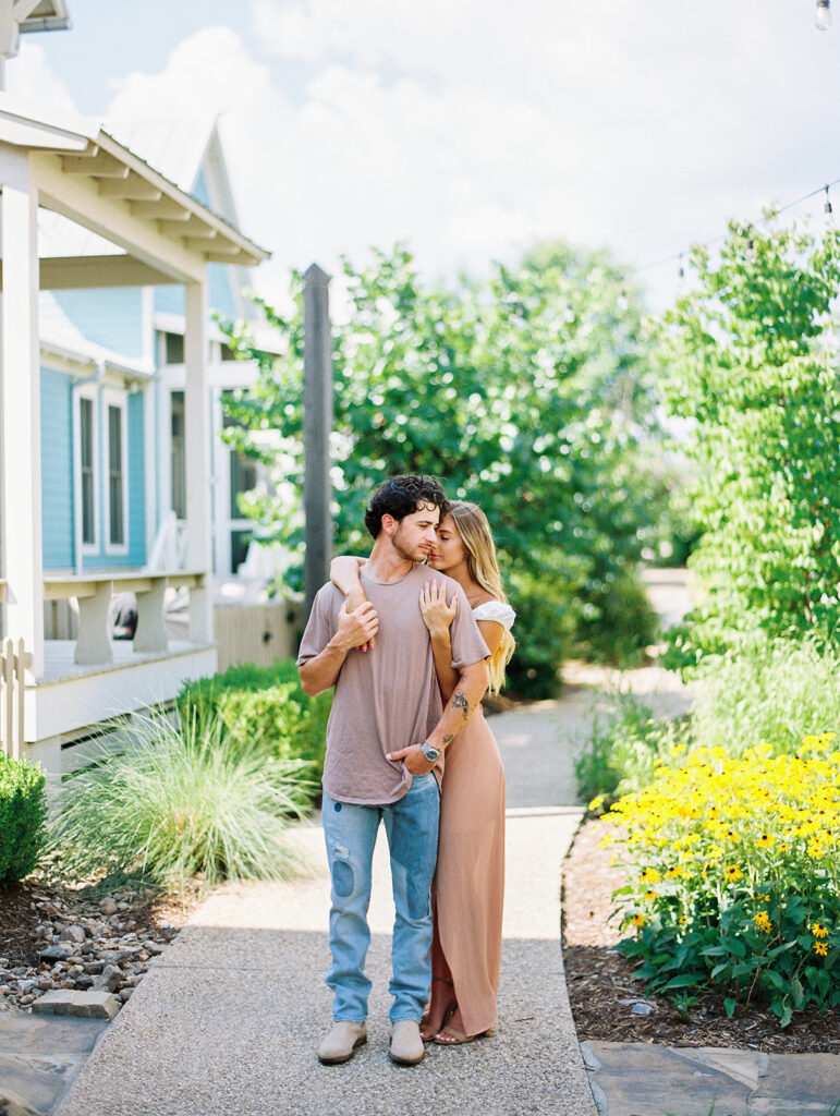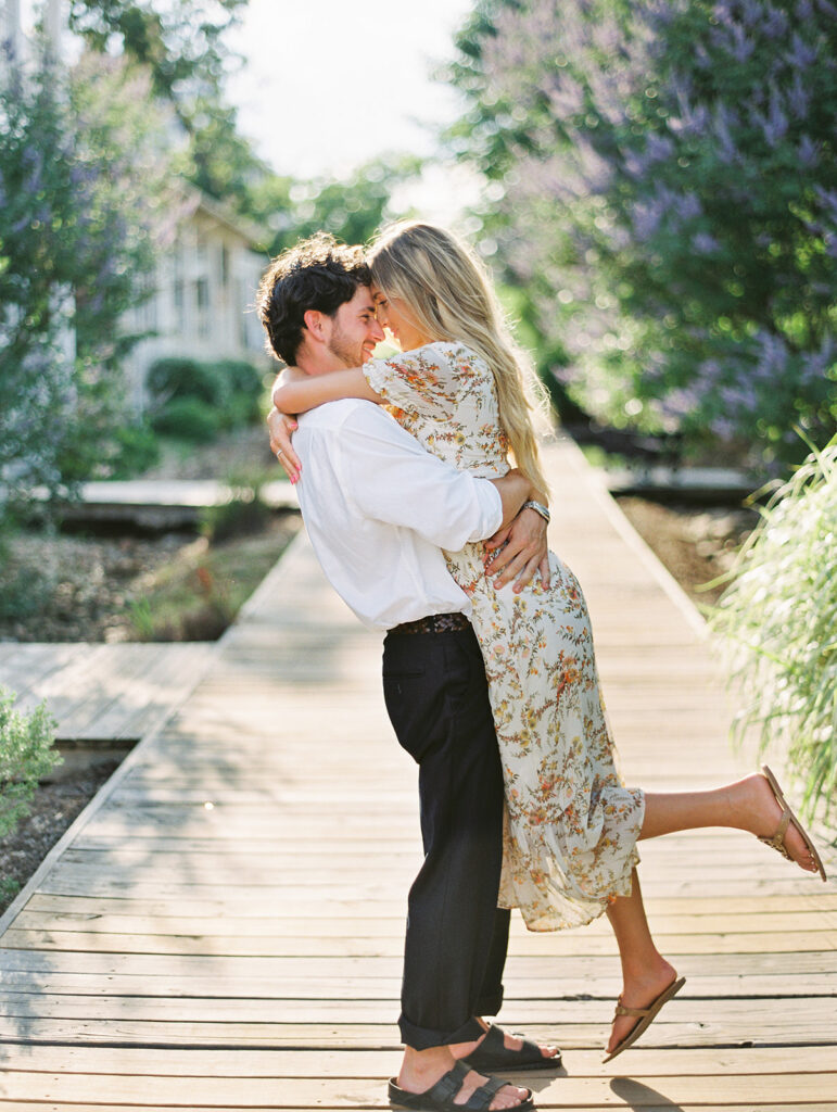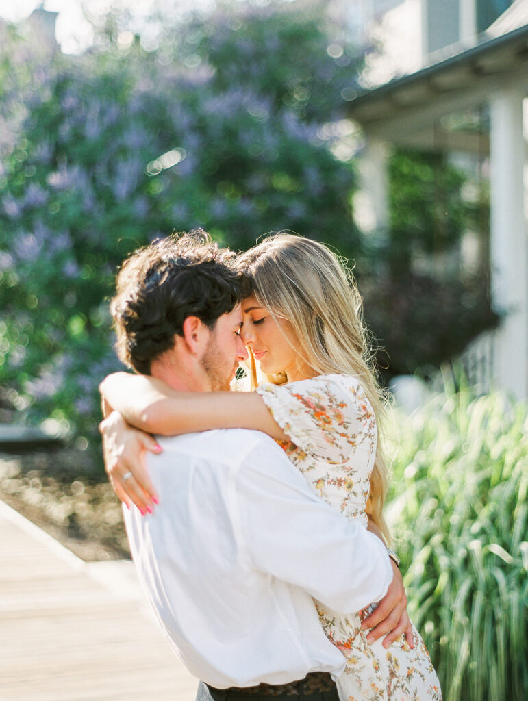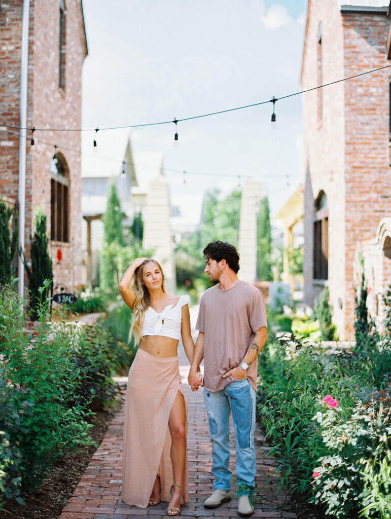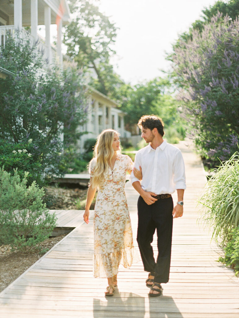 A Carlton Landing engagement session feels like stepping into a coastal retreat without ever leaving Oklahoma. The architecture, garden pathways, wooden boardwalks, and lakeside views offer a variety of backdrops for your engagement photos, ranging from soft and intimate to bright and airy, all within walking distance. The overall aesthetic draws inspiration from beloved coastal towns, blending influences from the Carolinas and 30A into a space that photographs beautifully.