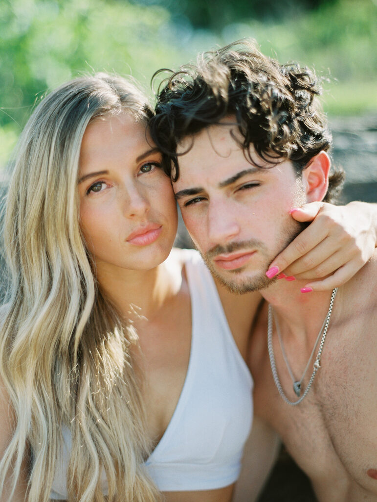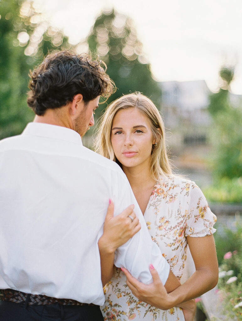 The way light filters through the trees and reflects across the lake creates a dreamy palette that film photography responds to effortlessly. Skin tones stay soft and natural, colors remain true, and the overall look feels timeless. For couples seeking engagement photos that feel elegant, organic, and enduring, Carlton Landing is a perfect match.