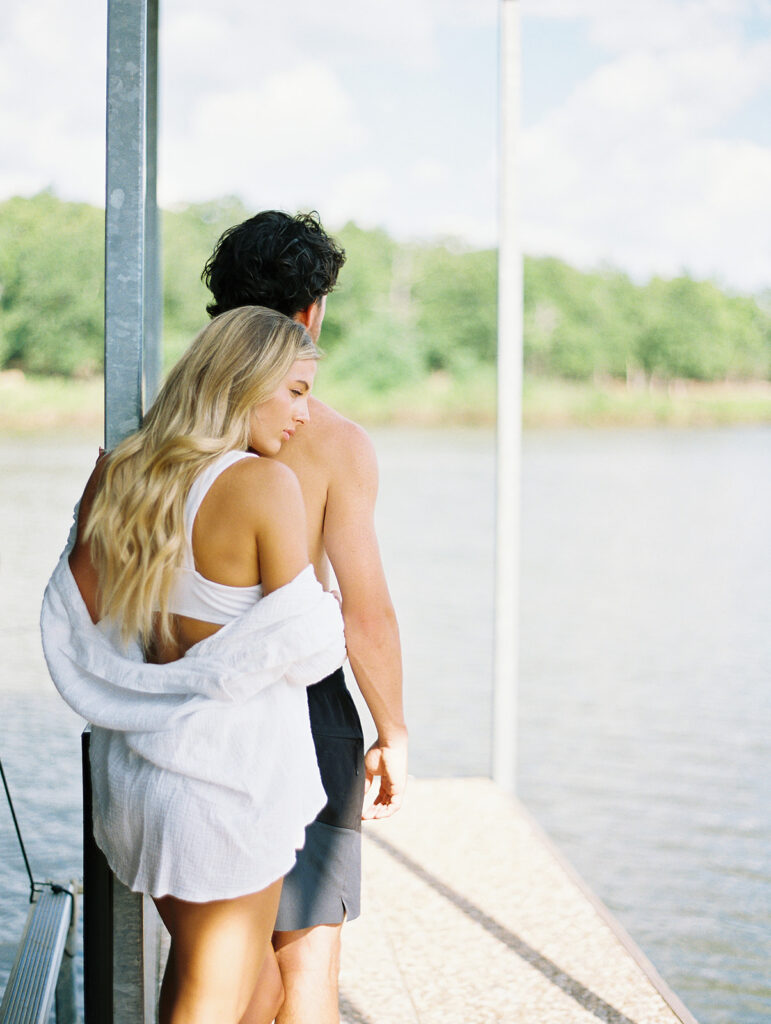 The images throughout this post were photographed entirely on film, a medium that brings depth, softness, and authenticity to every frame. The way film rendered their connection, with warm tones, organic textures, and serene stillness, mirrored the atmosphere of Carlton Landing itself: calm, romantic, and timeless. A Carlton Landing engagement session on film feels especially elevated, transforming simple moments into heirloom-worthy imagery.